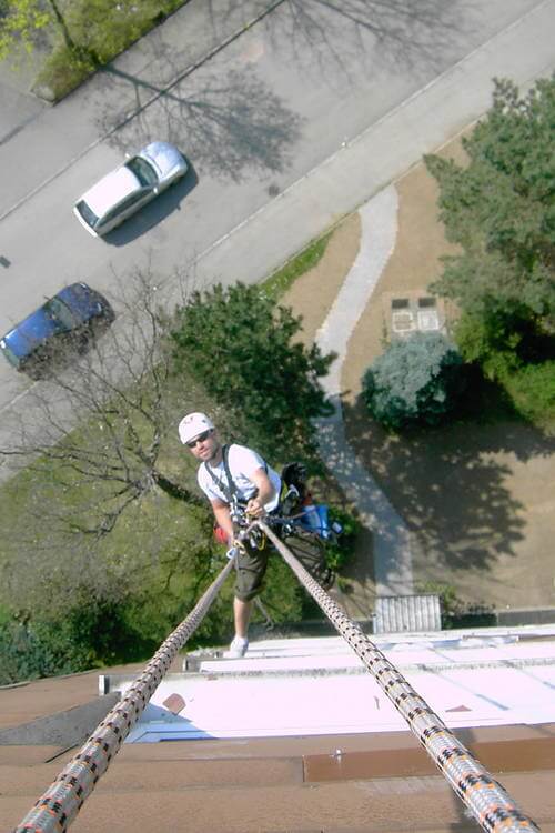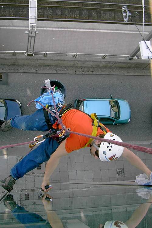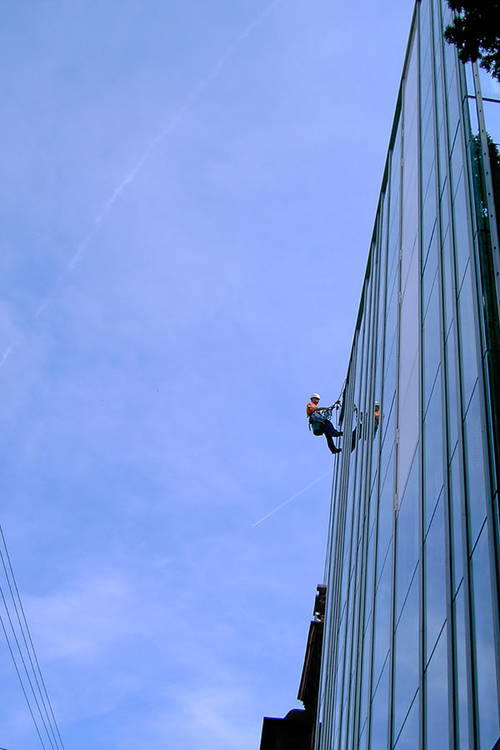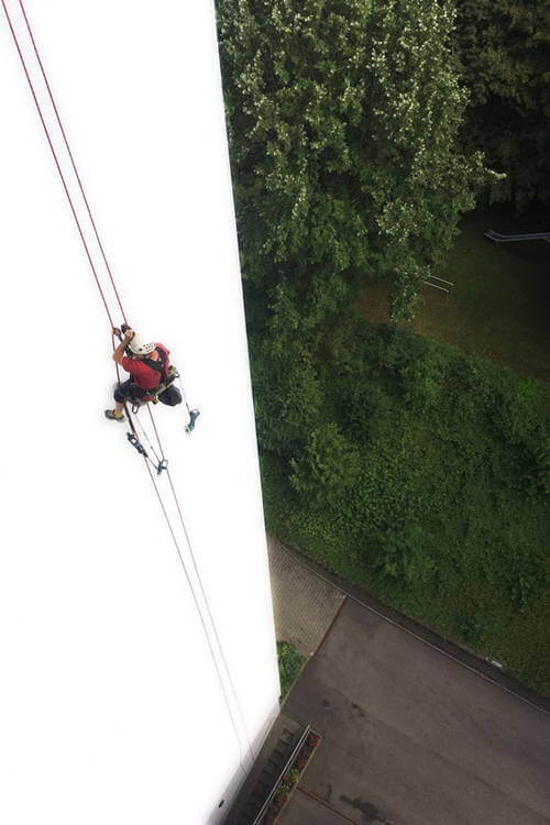 Nach den Sicherheits- und Arbeitsrichtlinien für Seilzugangtechniker der Berufsgenossenschaft verrichten wir fachmännisch Arbeiten, die noch vor wenigen Jahren als nicht durchführbar galten. Im Vergleich mit anderen Arbeitsmethoden ist es uns möglich vergleichsweise unauffällig zu Arbeiten und die Beeinträchtigung Ihres Arbeitsumfeldes für Sie und Ihre Kunden zu minimieren.