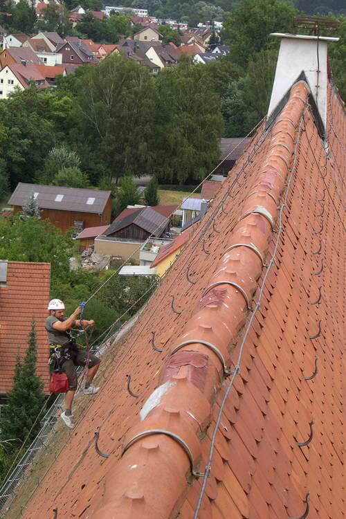 Mit modernsten Sicherungssystemen gelangen wir an die betreffende Stelle und können so mit dem kleinstmöglichen Aufwand die Arbeit aufnehmen. Dabei gewährleisten wir Sicherheit nach den Gesetzeslinien der BG Bau.