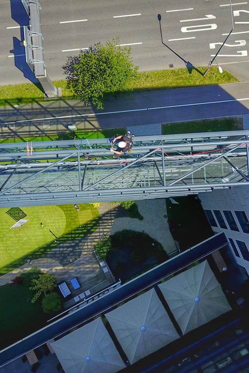 Arbeiten in großen Höhen waren traditionell mit einem immensen Aufwand verbunden. Es wurden große und teure Gerüste aufgebaut, mit Hebebühnen wurde versucht, der Sache bei zu kommen, manchmal sind dringende Maßnahmen wegen den großen Schwierigkeiten auch gar nicht gemacht worden.